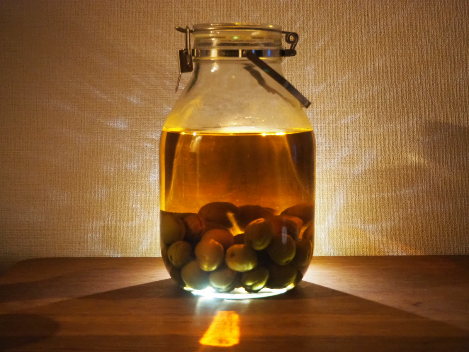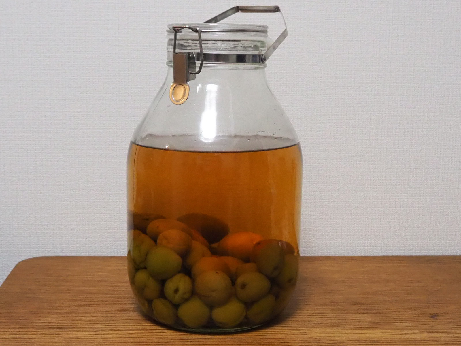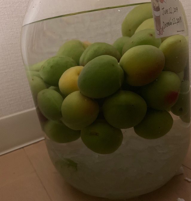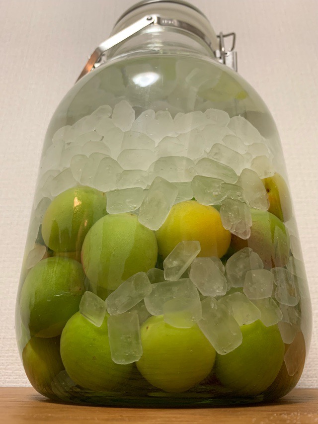 この順番に入れると、氷砂糖が重しとなって梅が浮かなくなりホワイトリカーで殺菌されるという事になるんでしょう。