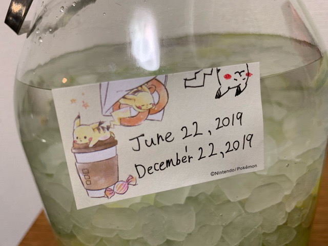 とりあえず、いつ漬け込み始めたのか付箋を貼って、ついでに完成の日にちもメモメモ。ピカピカ。