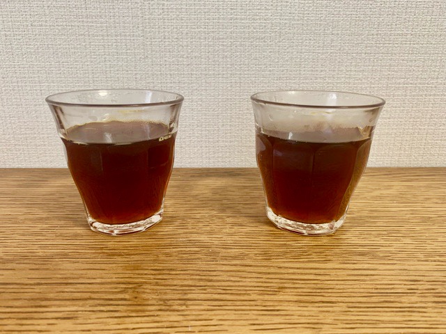 比較が必要だと思ったので、普通の水道水とアルカリイオンの水の両方で、浅煎りのコーヒーを淹れてみました。