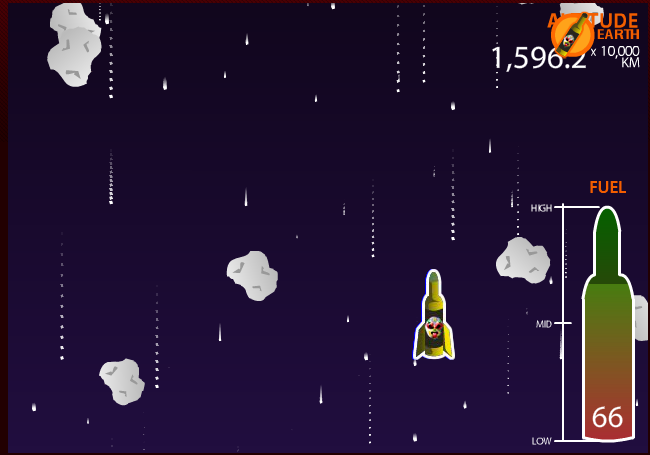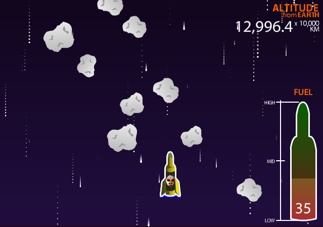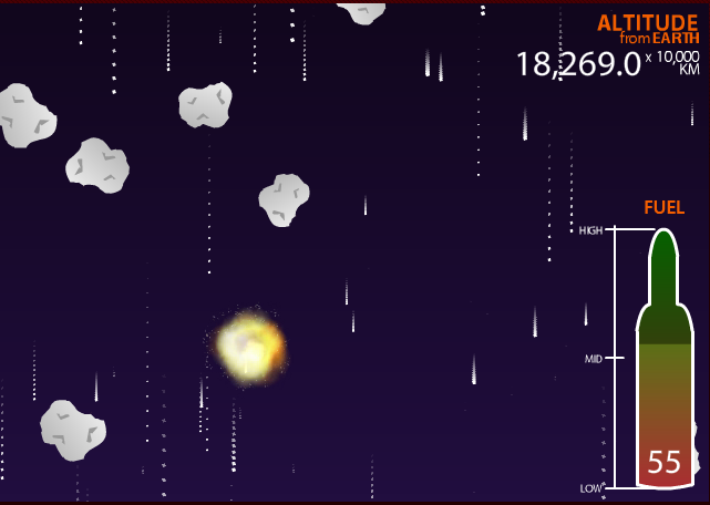 隕石(障害物)をよけ、RAAA(燃料)を補給しながらゴールを目指すというもの。