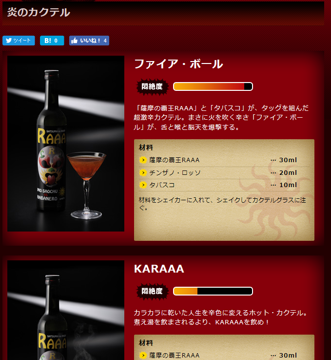 以前、飲み会の席に「薩摩の覇王RAAA」を持参してきた事があるのだが、誰もが少し舐めただけで飲むのをやめてしまった。