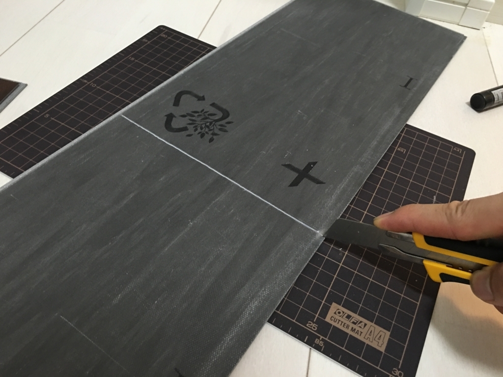 大きめのカッターと長めの定規、油性ペンがあればOK。