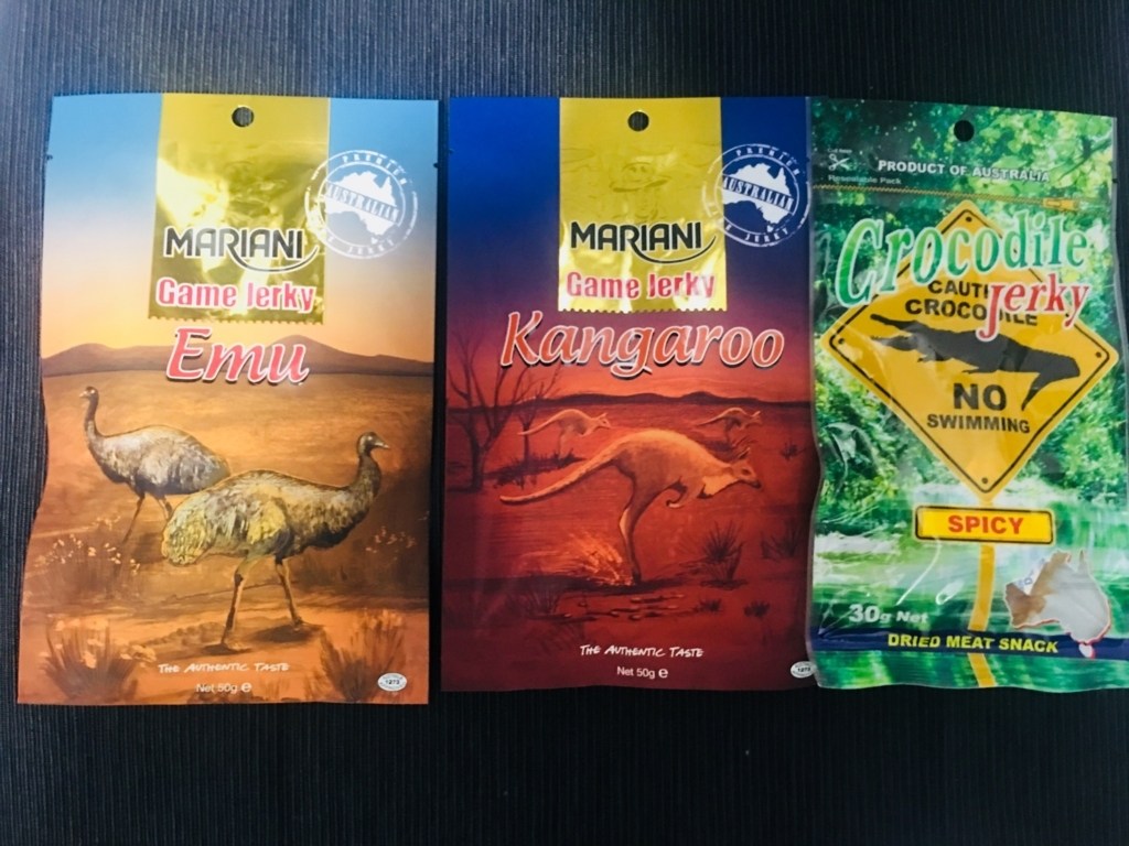 カンガルー、エミュー、クロコダイルのジャーキーです!