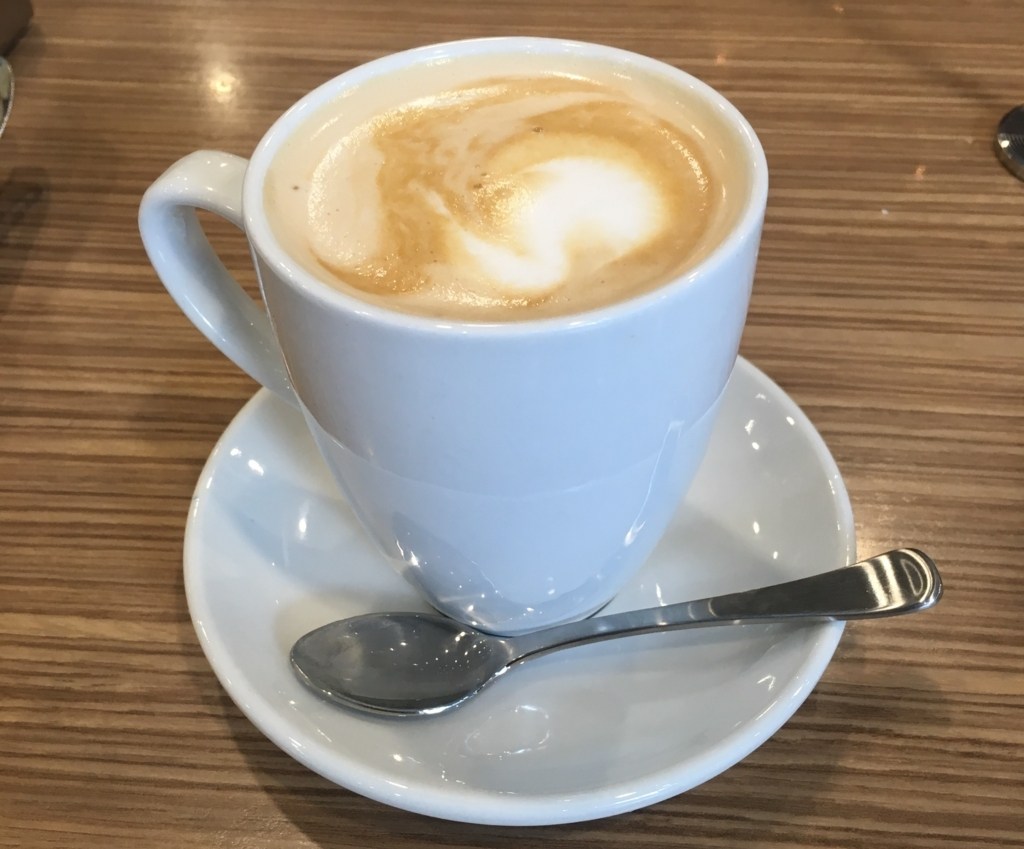 飲み物はフラットホワイト!やっぱオーストラリアと言えばこれでしょ。カフェラテとほとんど同じだけどな!
