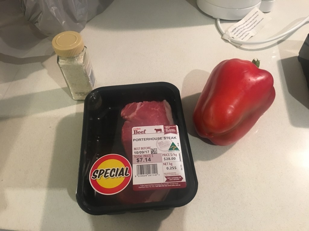 ということでスーパーでステーキ用の牛肉を購入。せっかくホテルにキッチンがあるので自分で焼いてみました。