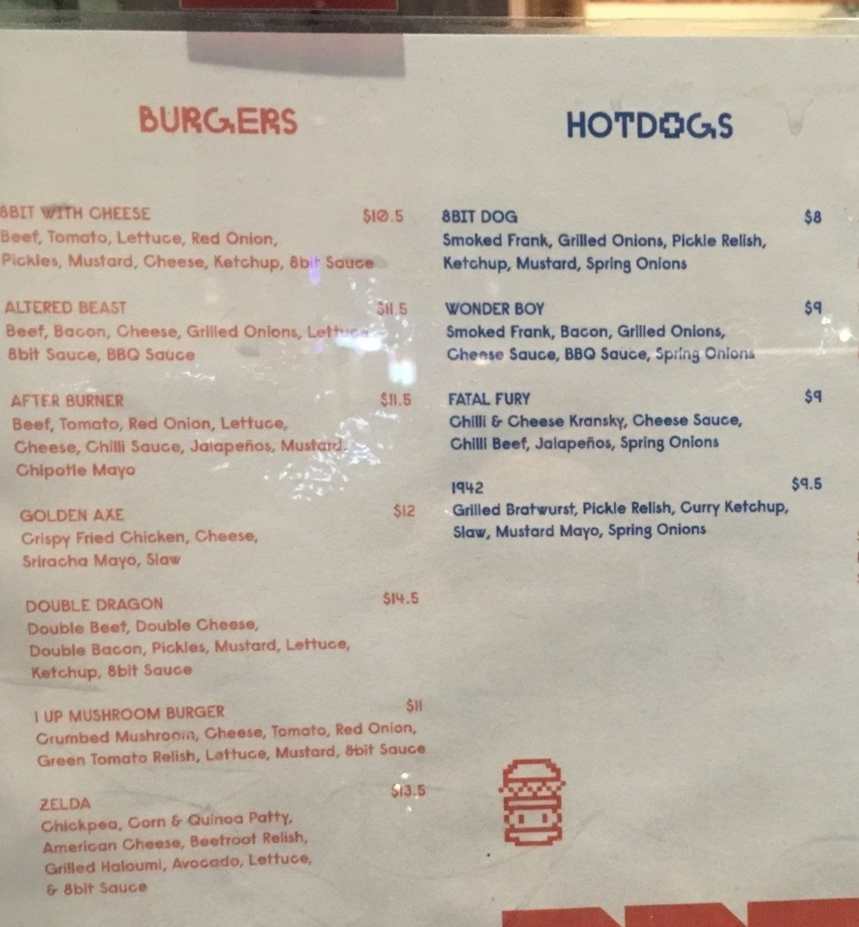 日本だと馴染みのないタイトルのメニューもありますが、「1UP MUSHROOM BURGER」とかは日本人でも「おお!」となるはず。